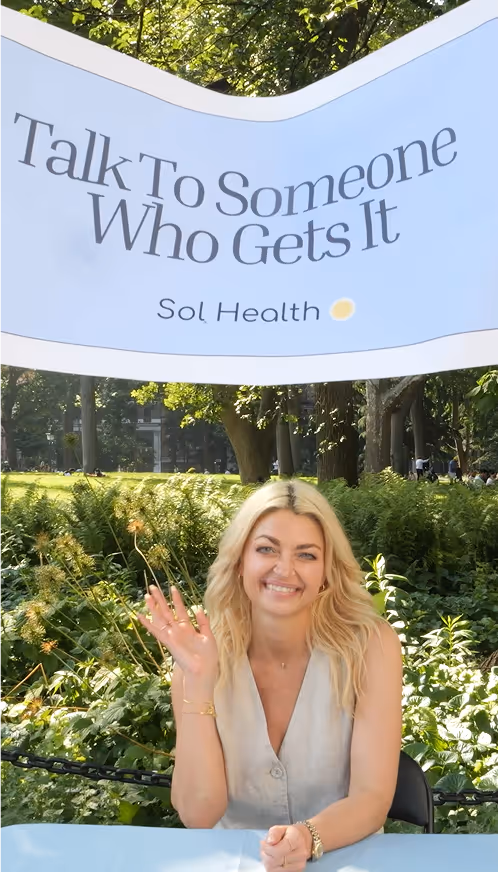 We also believe that most of us were never given the language to talk about what's going on inside. We weren't born knowing how to put words to our inner world. Sometimes what you're carrying has a clinical name: [anxiety, depression, OCD, grief]. But sometimes it doesn't. It's [loneliness, languish, the desire to be understood, high functioning burnout that looked like ambition, a quiet heartbreak . Sol gives you that vocabulary. And a therapist who will walk alongside you in it.